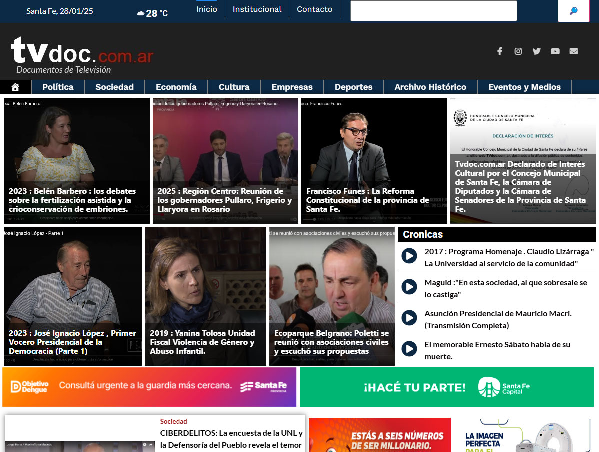 Sitio de documentos de televisión desarrollado en conjunto con COPRINF, es un sitio con gestion de contenidos, y videos reconocido por el Consejo Municipal de Santa Fe. . Ver más